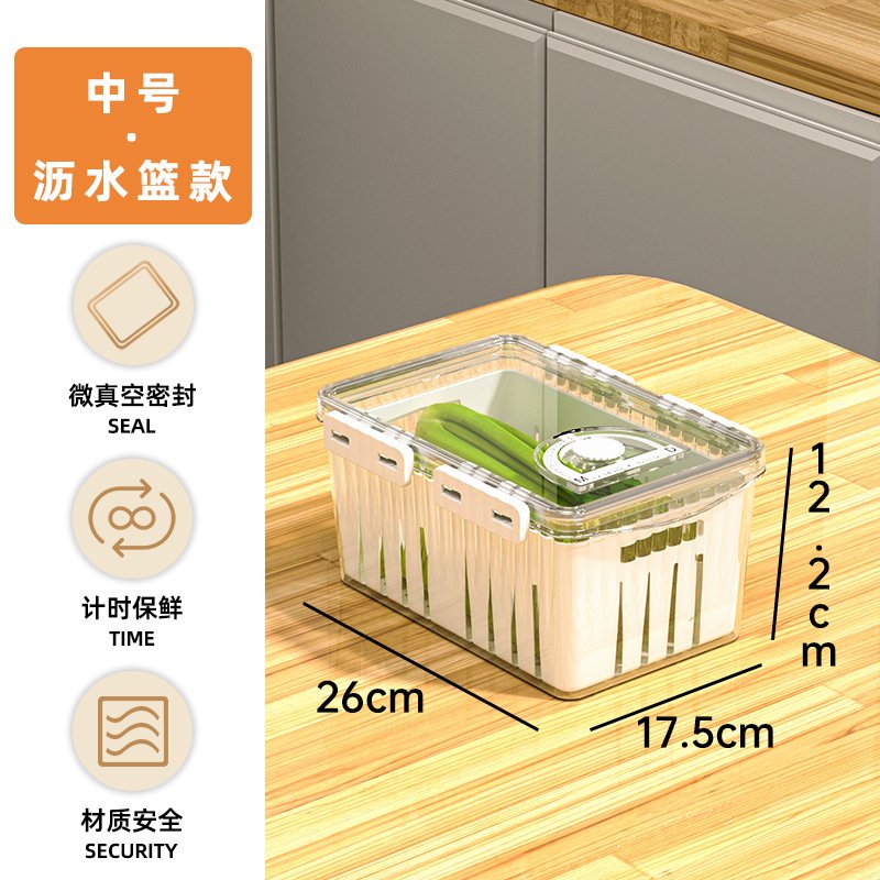 Recipientes herméticos para cozinha, geladeira, drenagem de qualidade alimentar, frutas e legumes, caixa de armazenamento de alimentos congelados TAMANHO 26 X 17 X 12.5CM