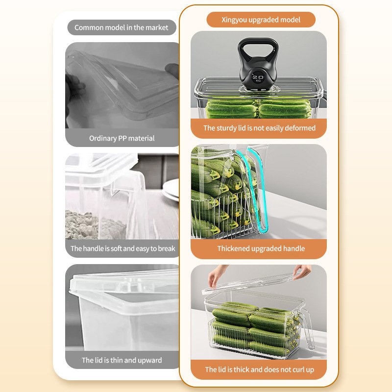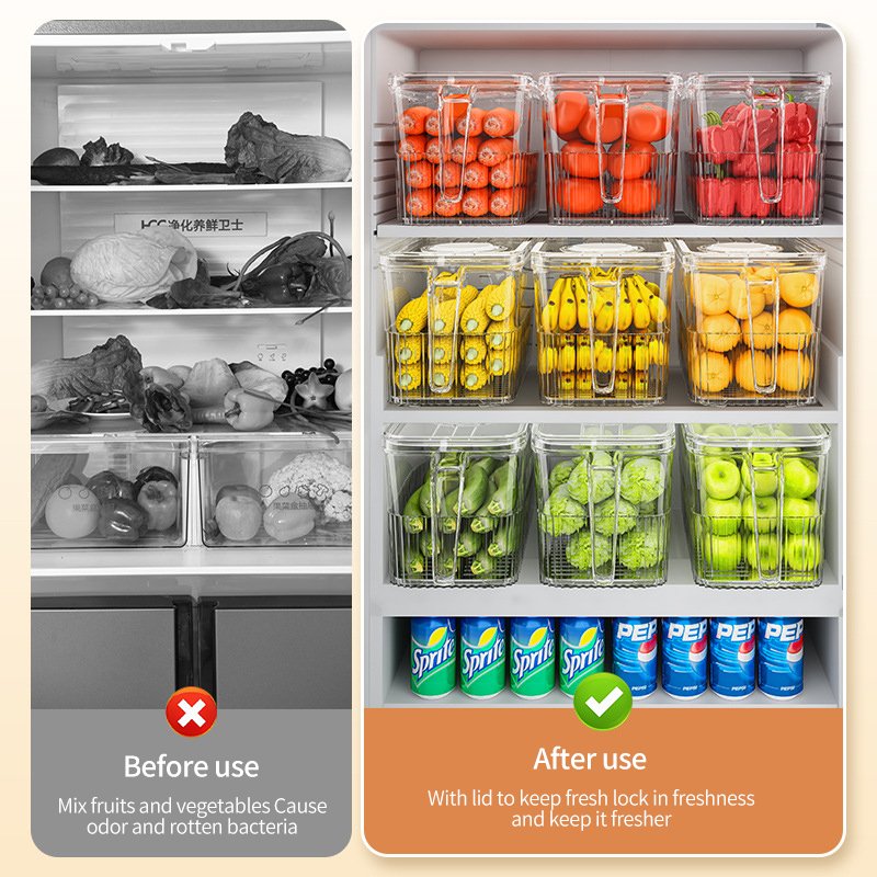 Organizador de Cozinha, Caixa de Armazenamento Transparente para Refrigerador Especial para Vegetais com Alça