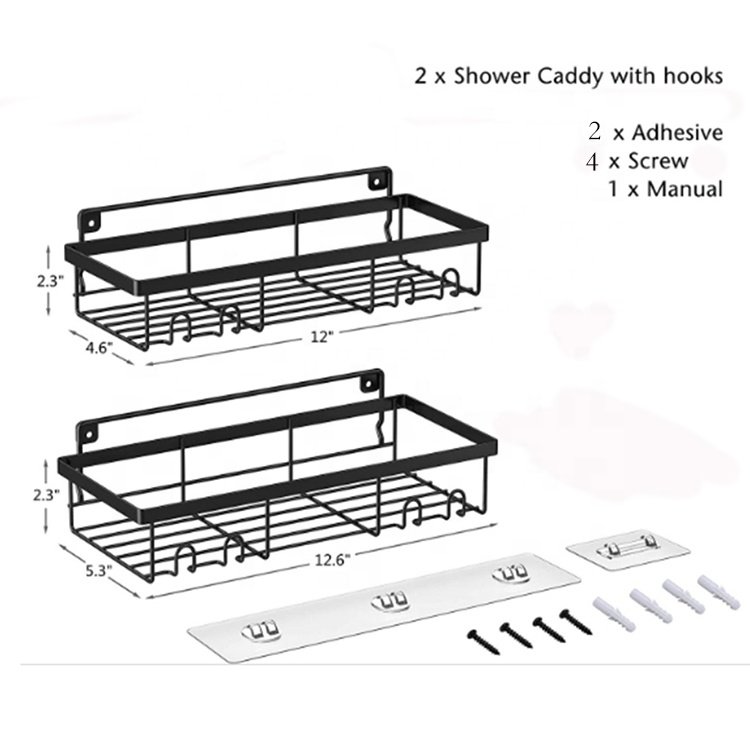 Organizador de Banheiro Premium em Promoção, Pacote com 2, Organizador Adesivo para Chuveiro com Ganchos
